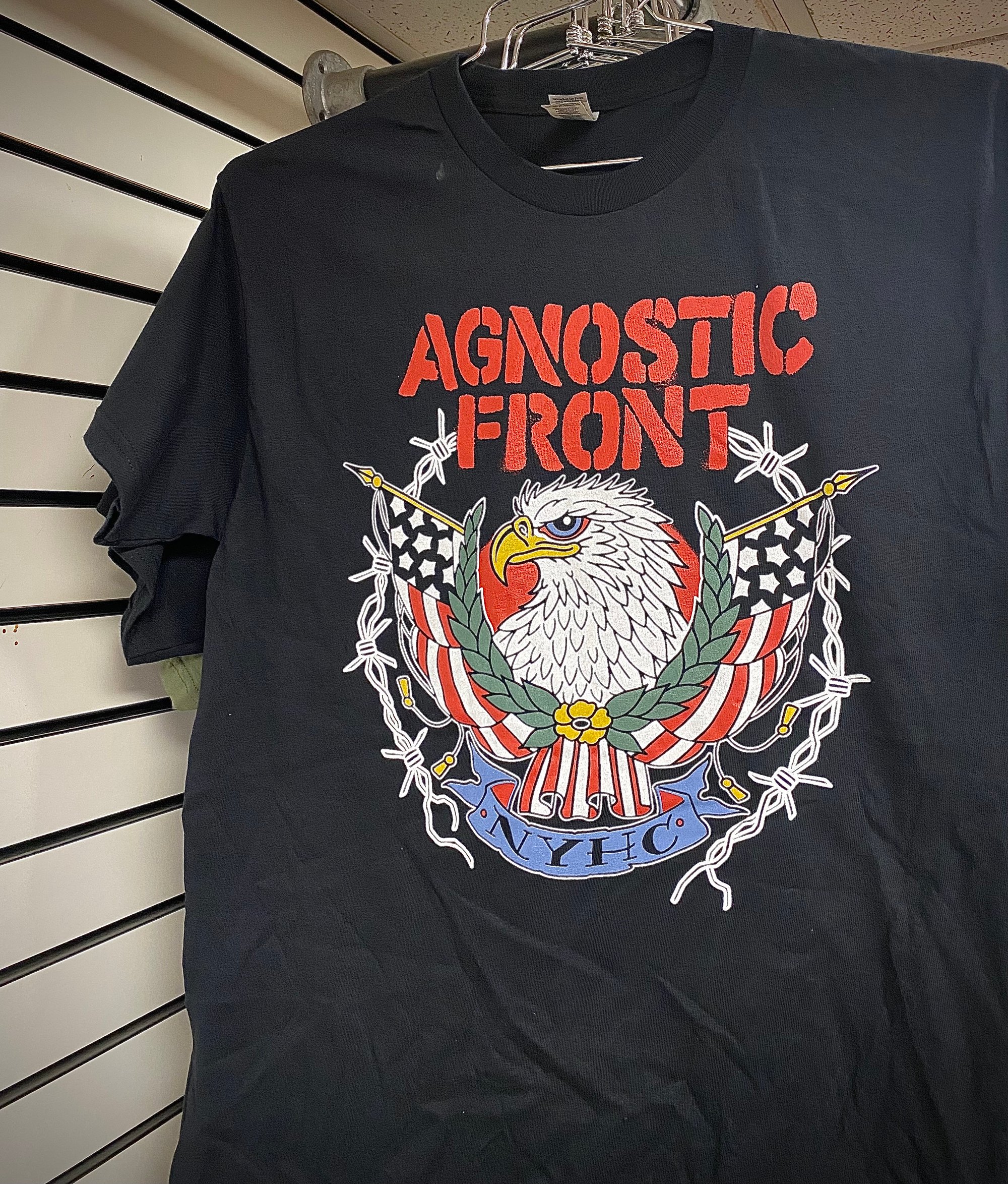 Black Agnostic Front Tattoo Eagle tee. Single sided design.