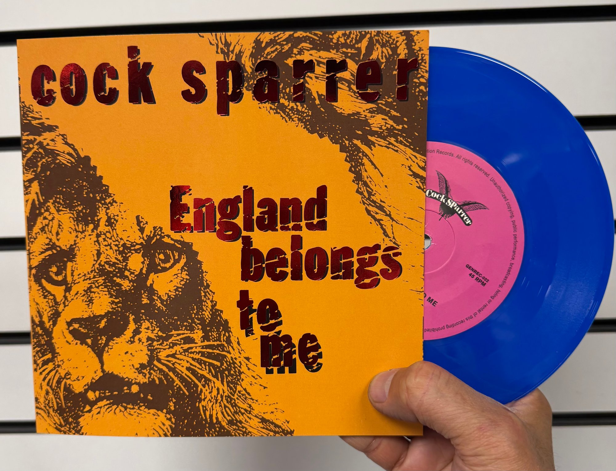 Our blue vinyl repress of the classic 1982 Oi! anthem, England Belongs To Me b/w Argy Bargy by the legendary Cock Sparrer with a metallic foil cover limited blue vinyl.